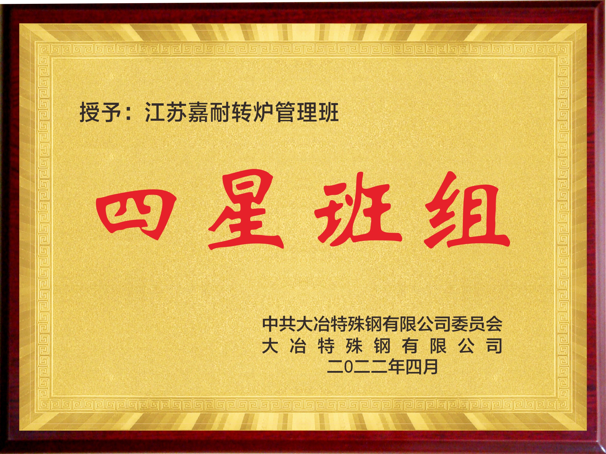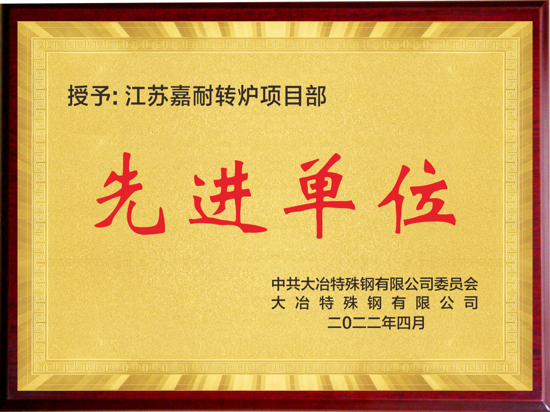 2022年4月9日,大冶特鋼2022年一季度工作總結表障大會順利舉行,江蘇嘉耐高溫材料股份有限公司(簡稱:嘉耐股份)冶鋼項目部被評為優秀單位;電爐廠中間包施工班組被評為四星班組和達標班組。嘉耐股份周高貴同志和章松云同志代表公司參加表彰大會。